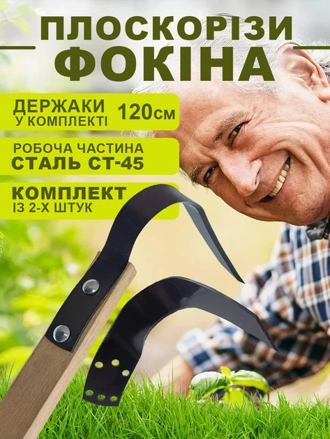 Комплект універсальних плоскорізів Фокіна сталь 65Г (набір з двох) з держаками 1.2 м