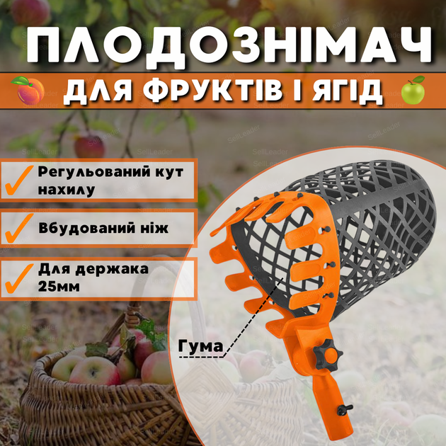Плодозбирач інструмент садовий Bradas KT-V1532H без держака для збирання зняття фруктів ягід яблук з дерева