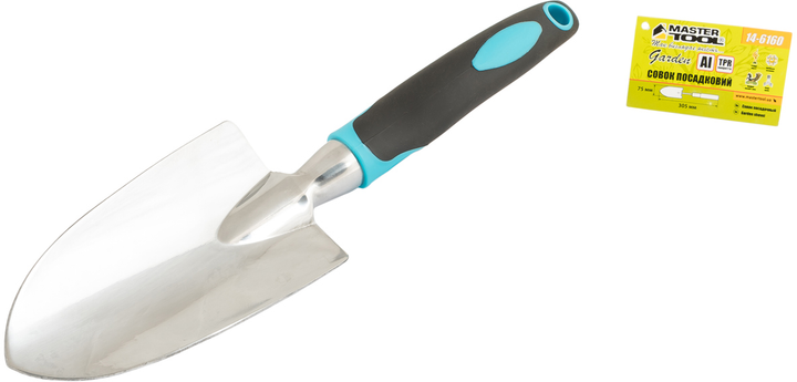 Совок посадковий Mastertool алюмінієвий з пластиковою ручкою та TPR-покриттям 305х75 мм (14-6160)