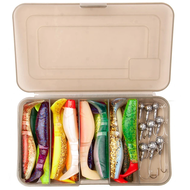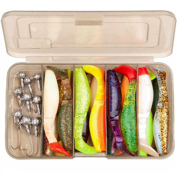 Набір силікону віброхвіст 16 шт для лову щуки судака джиг головка в коробці