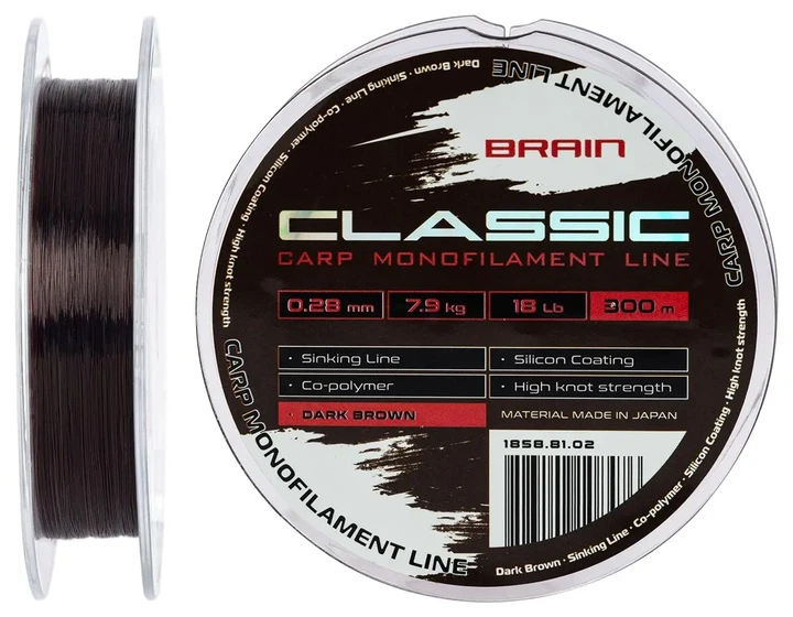 Волосінь Brain Classic Carp Line Dark brown 300m 0,28mm 7,9kg 18lb (1858-81-02)