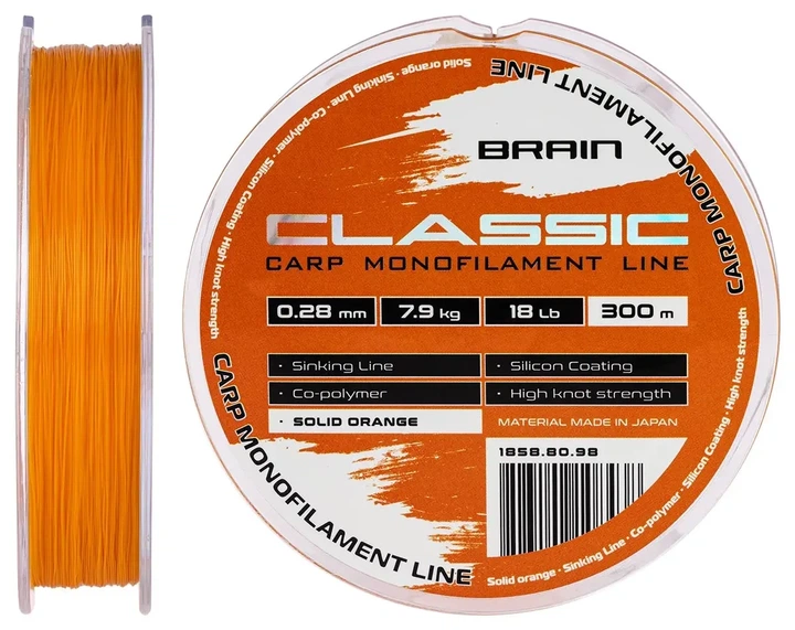 Волосінь Brain Classic Carp Line Solid orange 300m 0,28mm 7,9kg 18lb (1858-80-98)
