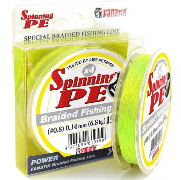 Шнур Fanatik Spinning PE X4 150 м (#0,8) 0.14 мм 6,8 кг Yellow