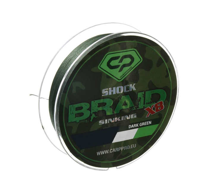 Шок-лідер Carp Pro Diamond Shock Braid PE X8 25lb 0.16мм 50м Dark Green (CP1625-8-50)