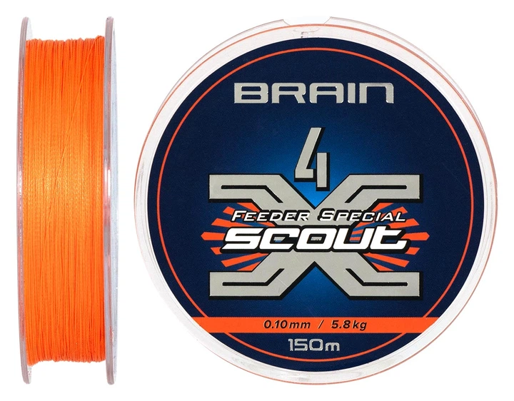 Шнур Brain Scout 4X 150m (fluoro Orange) 0.100mm 5.8kg для фідерної ловлі