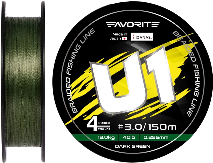 Шнур Favorite U1 PE 4x 150 m #3.0/0.296 мм 40lb/18 кг Dark green (16931173)