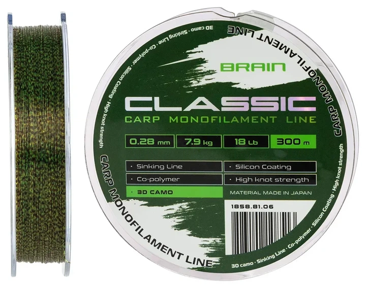Волосінь Brain Classic Carp Line 3D camo 300м 0.28мм 7.9кг 18lb (3103080002)