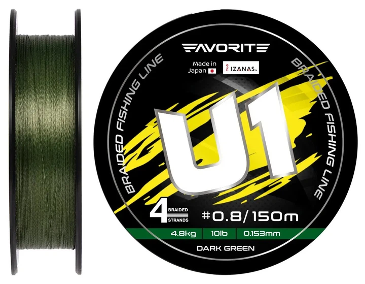 Шнур Favorite U1 PE 4x 150м #0.4/0.108mm Dark green