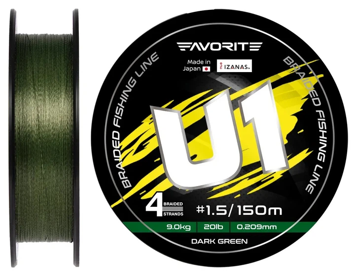 Шнур Favorite U1 PE 4x 150м #1.5/0.209мм 20lb / 9кг dark green