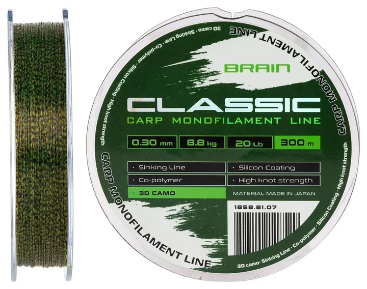 Волосінь Brain Classic Carp Line 3D camo 300m 0,30mm 8,8kg 20lb (1858-81-07)