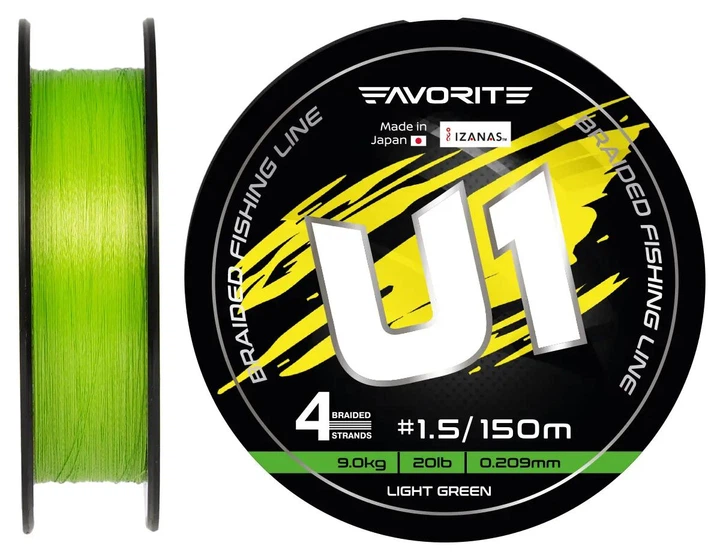Шнур Favorite U1 PE 4x 150m (light green) #1.5/0.209mm 20lb/9.0kg