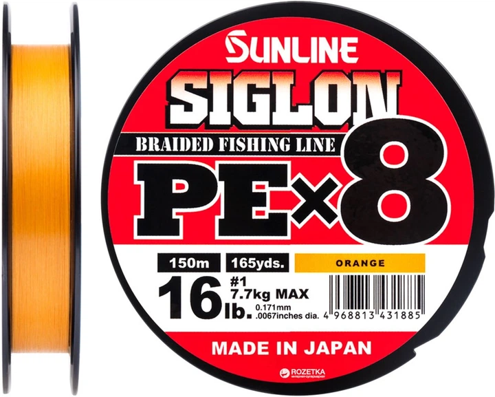 Шнур Sunline Siglon PE х8 150m (оранж.) #2.0/0.242mm 35lb/15.5kg (4949) 1658.09.93