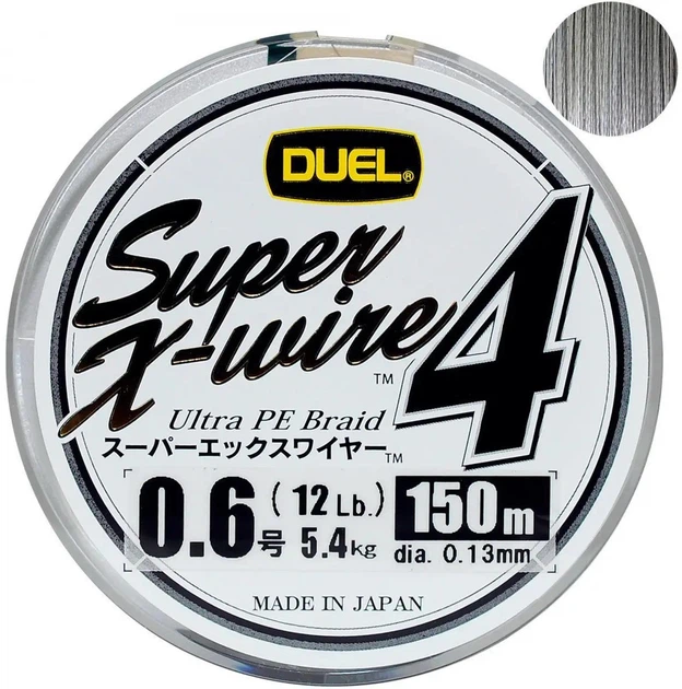 Шнур YO-Zuri Super X-Wire 4 Silver 150m (сірий) #0.6/0.13mm 12lb/5.4kg