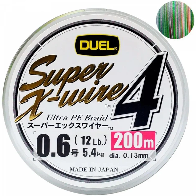Шнур Duel Super X-Wire 4 200m #0.6/0.13mm 12lb/5.4kg к:5 color