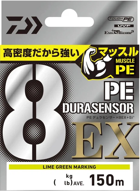 Шнур Daiwa UVF PE Dura Sensor X8EX+Si3 150m (Lime Green Marking) #0.8/0.148mm 15lb/6.8kg