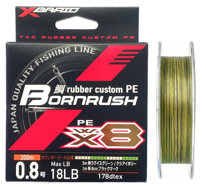Шнур YGK X-Braid Bornrush WX8 200м #0.8/0.148мм 18lb/8.1кг (3200429004)