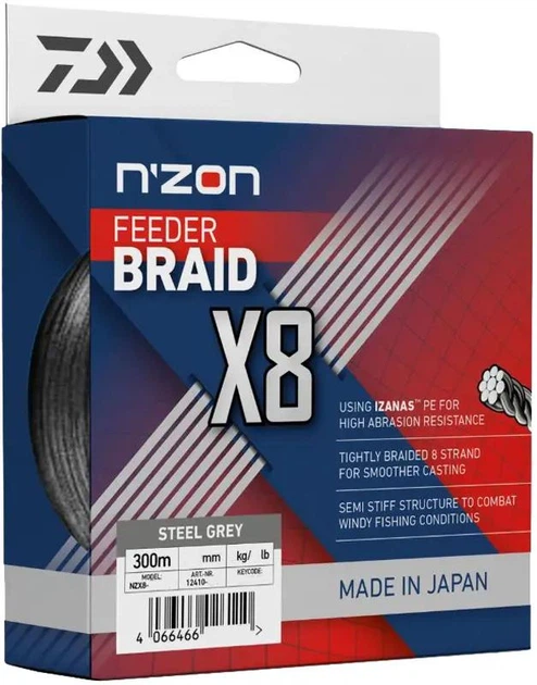 Шнур Daiwa N’Zon X8 Braid 300m (Steel Gray) 0.12mm 19lb/8.5kg