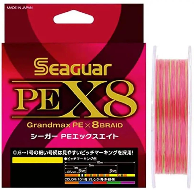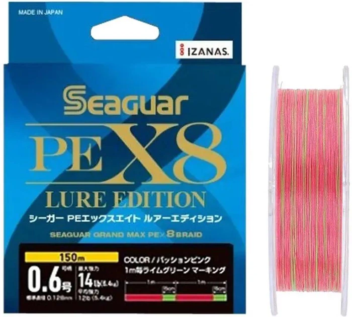 Шнур Seaguar Grandmax PE x8 Lure Edition 200m (red/lime green) #0.8/0.148mm 18lb/8.2kg