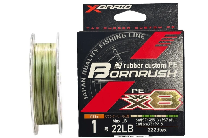 Шнур YGK X-Braid Bornrush WX8 200м #0.4/0.104мм 10lb/4.5кг (3200429001)