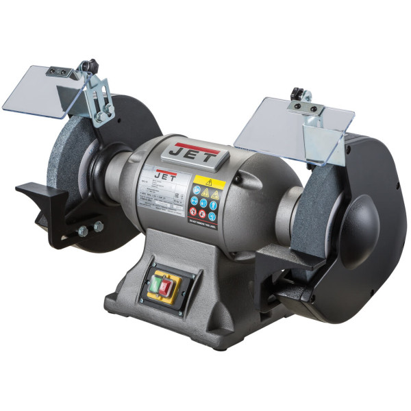 Опис Заточний верстат JET IBG-10 працює від трифазної електромережі 380 В. Споживана потужність становить 1.9 кВт, вихідна — 1.1 кВт. Розміри круга — Ø250х25х25.4 мм. Швидкість обертання диска — 1400 об/хв. Захисні екрани. Один загальний пиловідвід для двох дисків. Довжина кабелю — 1820 мм. Вага — 51.5 кг. Заточний верстат JET IBG-10 потужністю 1.9 кВт для заточування різноманітних інструментів