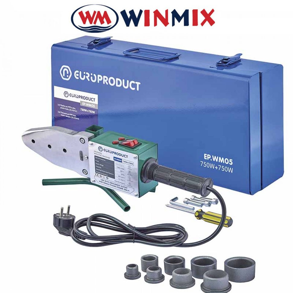 Паяльник для полипропиленовой трубы EP.WM05 750+750Вт (плоские насадки) 20/40 мм (кейс метал), Winmix Европродукт