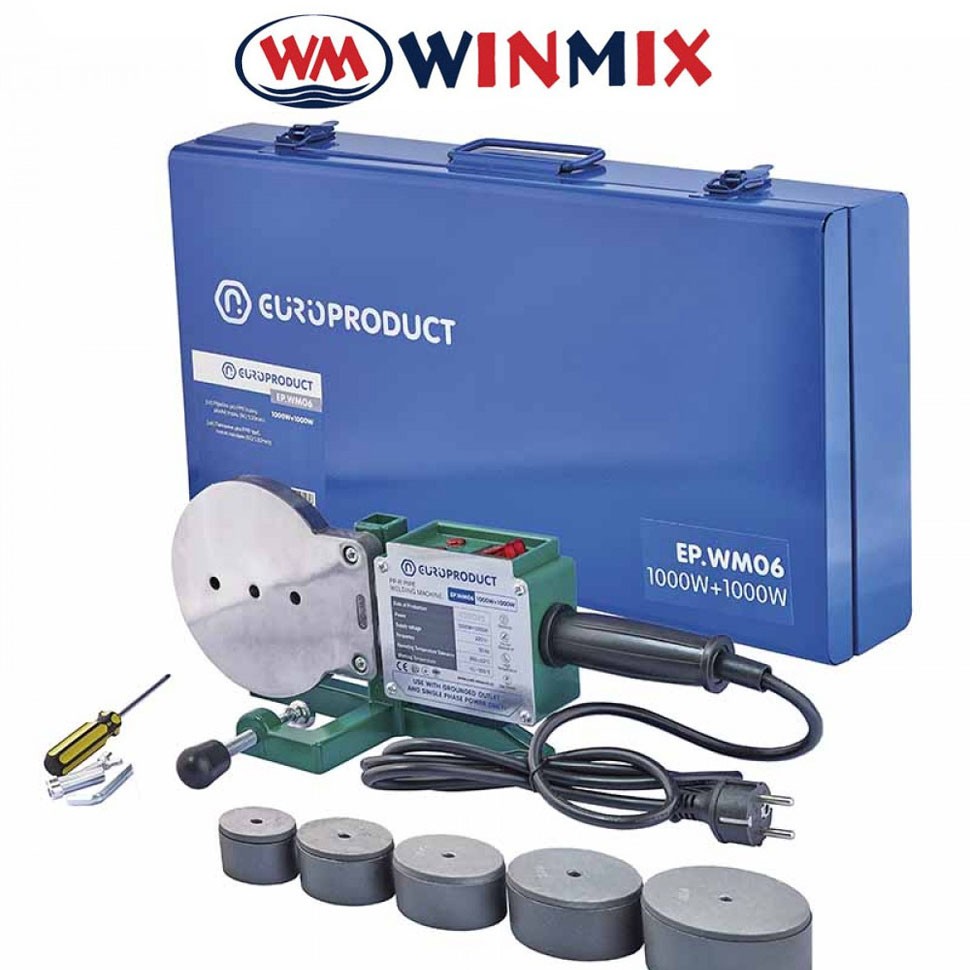 Паяльник для полипропиленовой трубы EP.WM06 1000+1000 Вт (плоские насадки) 50/110 мм (кейс метал), Winmix Европродукт