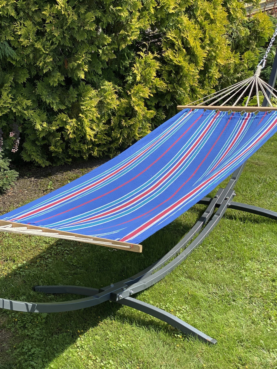 Монотонний гамак з планкою WISH синій двомісний XXL 200х150 WCG H-08Bl-2