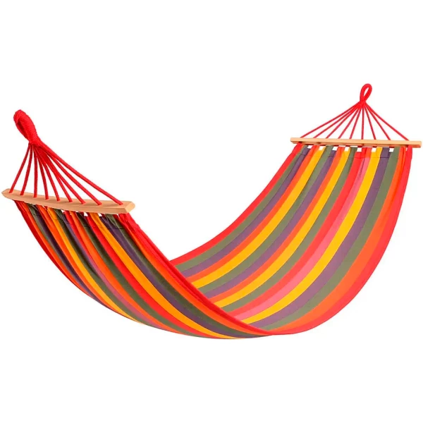 Гамак підвісний Amazonas яскравий смугастий тканинний з дерев'яною планкою посилень з чохлом у комплекті 150х200 см Червоний