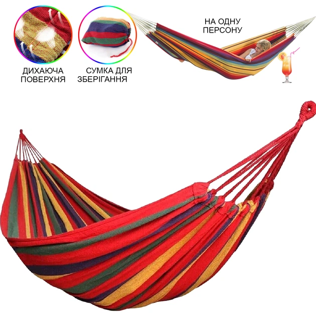 Гамак підвісний для відпочинку тканинний безкаркасний одномісний Mexikan Hammock різнобарвний гавайський для дачі, дому та с