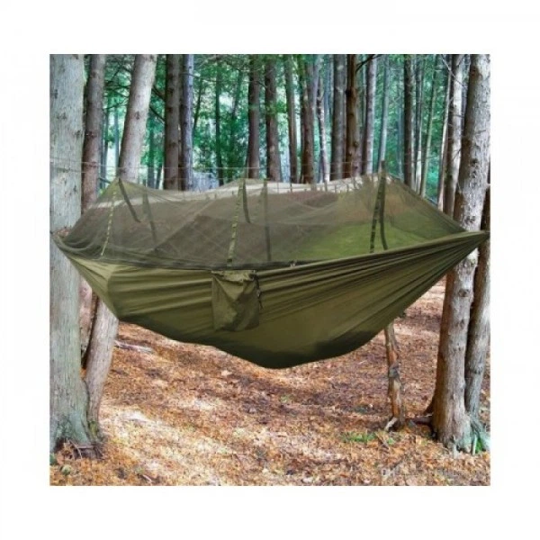 Гамак підвісний туристичний з москітною сіткою 220х120 см для відпочинку Хакі