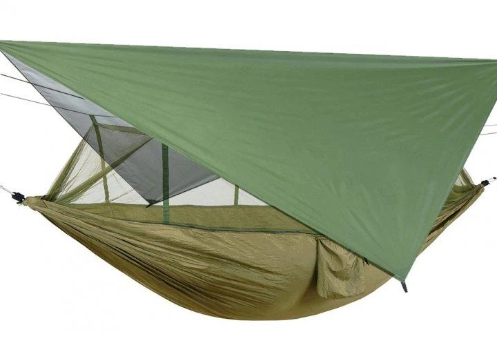 Гамак з москітною сіткою та тентом від дощу і сонця туристичний 260140 см, кемпінговий підвісний гамак-спальний мішок з наві
