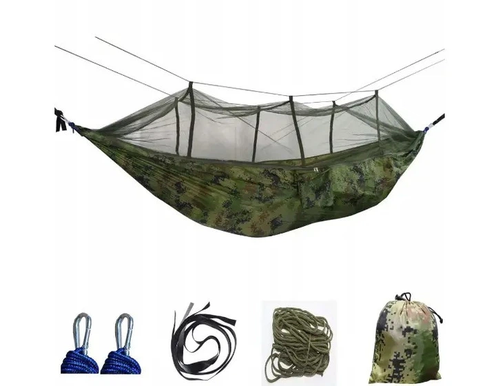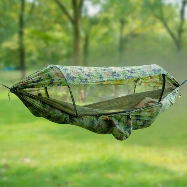 Гамак з москітною сіткою та кріпленням 270х150 см Зелений камуфляж (SN9QI11487)