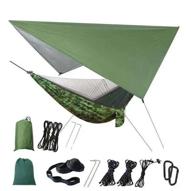 Гамак для кемпінгу з брезентом від дощу та москітною сіткою, з ременями для дерев