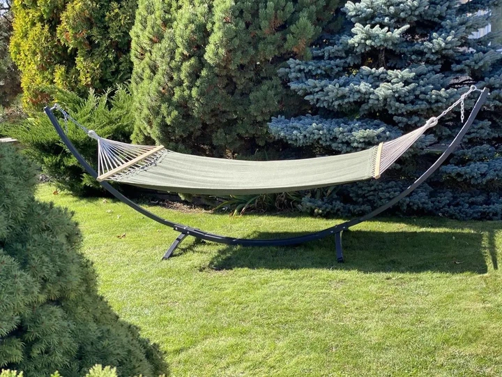 Гамак підвісний WCG XXL для двох з поперечиною та каркасом 200х150 см Зелений (H08-5-К-1)