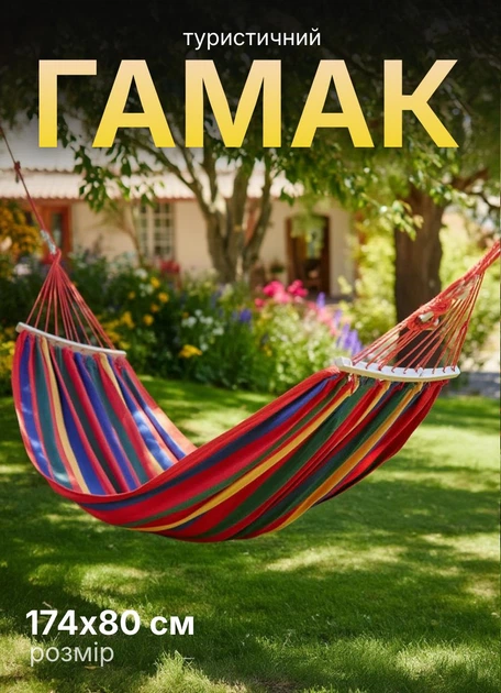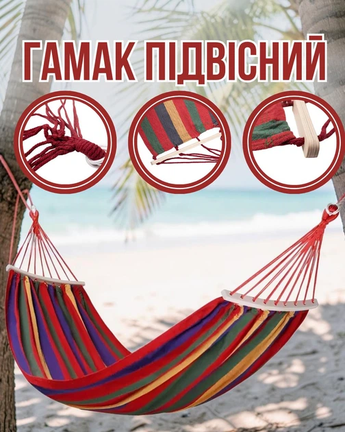 Гамак туристичний підвісний тканинний 174х80 см садовий гамак з планкою на дачу для відпочинку Червоний