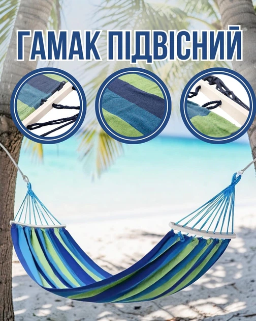Гамак туристичний підвісний SJ-0010-2BL тканинний з планкою гойдалка для відпочинку на природі