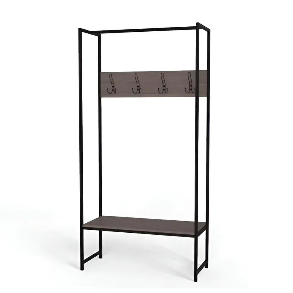 Вмістка підставка під взуття з використанням натурального дерева - виріб, який стане обов'язковою частиною вашої оселі, ідеально підходить для ефективного зберігання та виставлення ваших улюблених пар взуття. Підставка має дві металеві полиці для взуття, які виконані в кольорі графіт. Поличку з натурального дерева ви можете використовувати як підставку для сумок, або як місце для сидіння. Металевий каркас конструкції міцний та надійний.