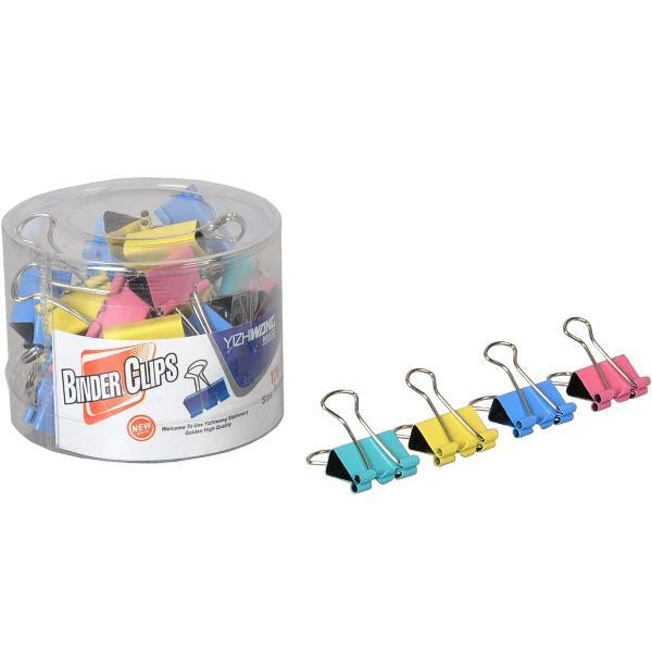 Біндер 15 мм (60 штук) затискач для паперу канцелярський металевий кольоровий