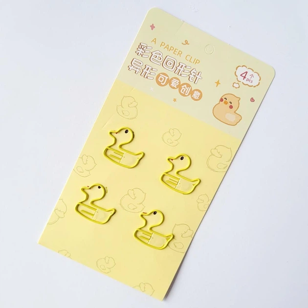 Набір канцелярських закладок скрепок металевих жовті каченята Duck 4 шт