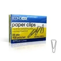 Скріпки канцелярські 28мм 100шт трикутні нікельовані картон уп ECONOMIX