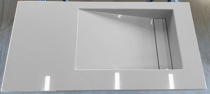 Суцільнолита стільниця Snail Луція R/L 910х600мм з накладкою білий глянець 18А100L