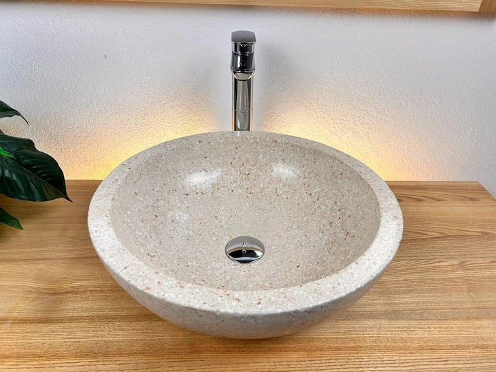 Круглий умивальник накладний кам'яний 45 х 45 см бежевий TR.16.2
