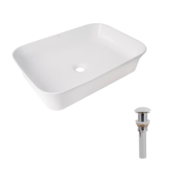 Комплект Qtap Virgo N: Раковина накладна 560x380x130 мм, White, прямокутна + Донний клапан Pop-up PU02