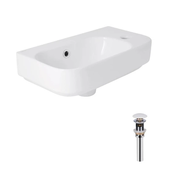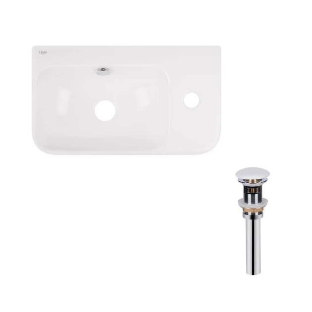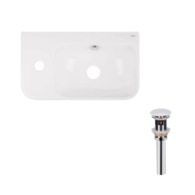 Комплект Qtap Tern: Раковина підвісна прямокутна ліва 450х250х158 мм White + Донний клапан PU02O