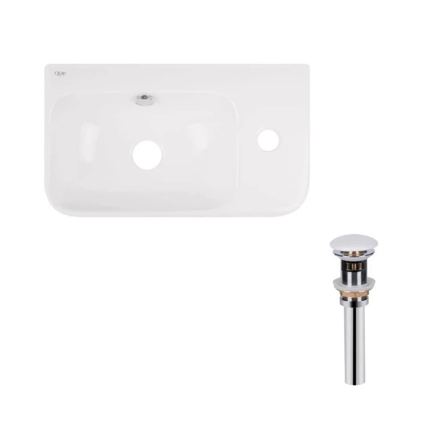 Комплект Qtap Tern: Раковина підвісна прамокутна права 450х250х158 мм White + Донний клапан PU02O