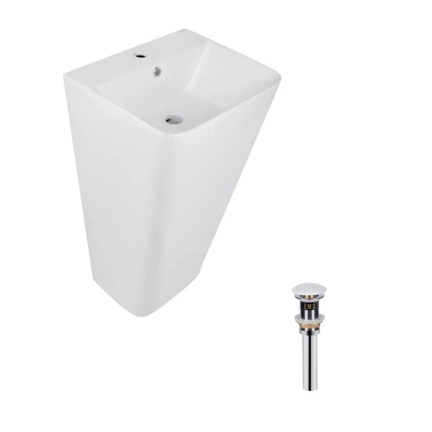 Комплект Qtap Tern: Раковина підлогова моноблок 440х380х830 мм White + Донний клапан PU02O