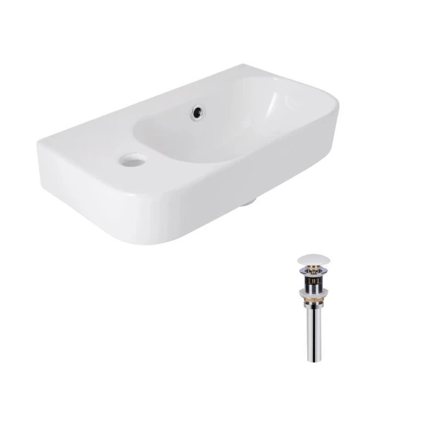 Комплект Qtap Tern: Раковина підвісна прямокутна ліва 450х260х155 мм White + Донний клапан PU02O