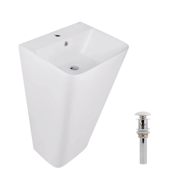 Комплект Qtap Tern: Раковина-моноблок напольний 440x380x830 мм, White + Донний клапан Pop-up PU02O