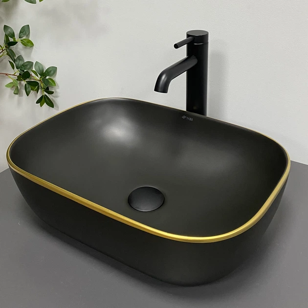 Умивальник (раковина) VBI RAVENNA BLACK MATT GOLD EDGE накладний