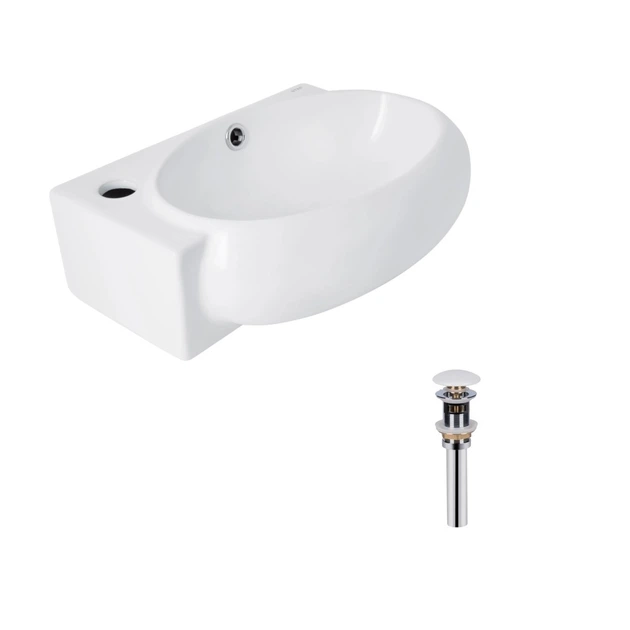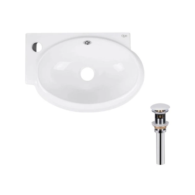 Раковина підвісна овальна ліва Qtap Leo 420x280x150 мм White + Донний клапан PU02O